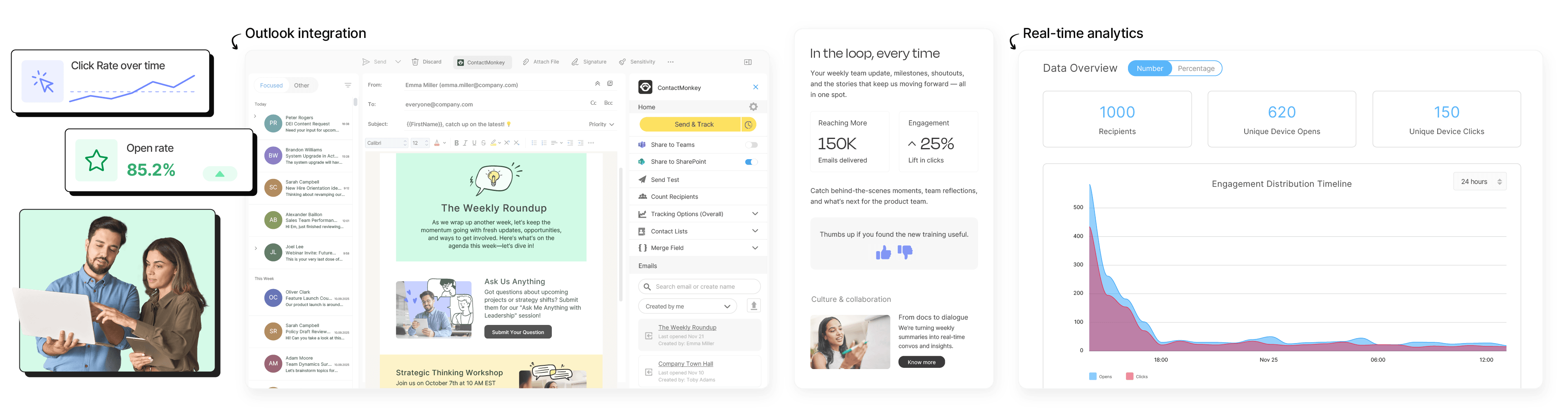 ContactMonkey helps you create, send, and track internal emails right from Outlook and Gmail so you can demonstrate the value of internal comms.