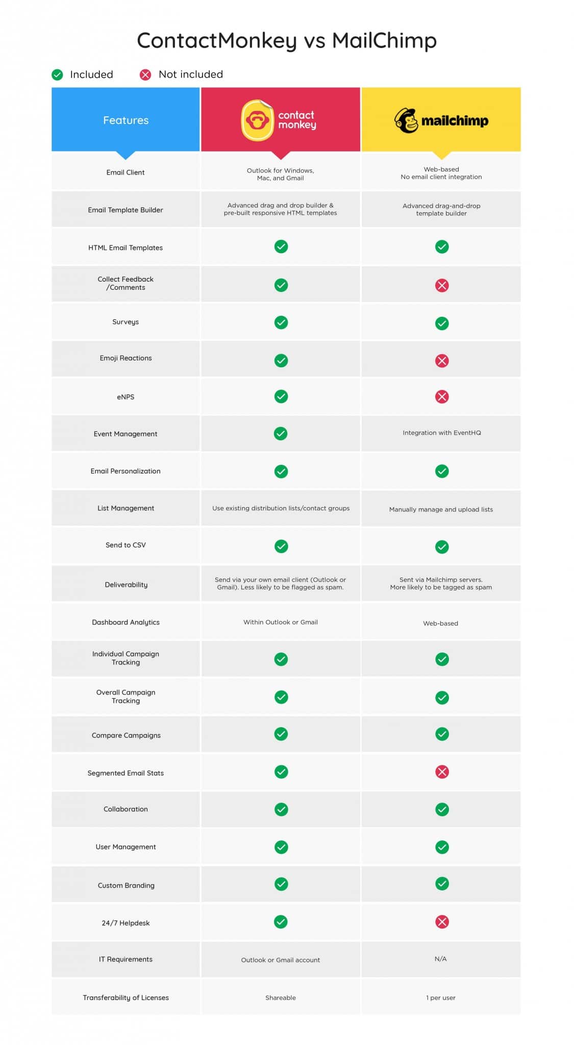 Here’s a breakdown of how Mailchimp compares to ContactMonkey: