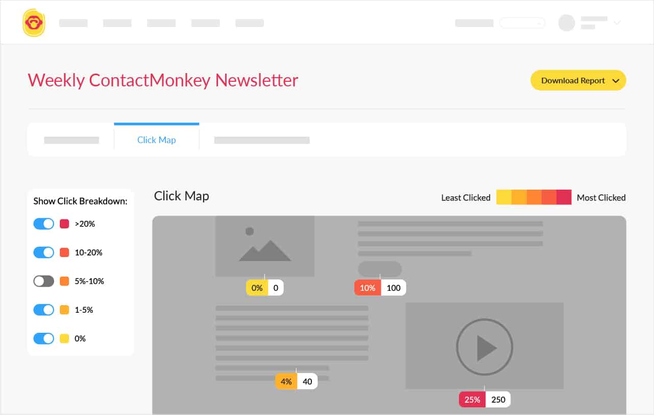 Gather email design insights using ContactMonkey’s Click Maps feature, that let’s you view which parts of your email got the most attention from your employees: