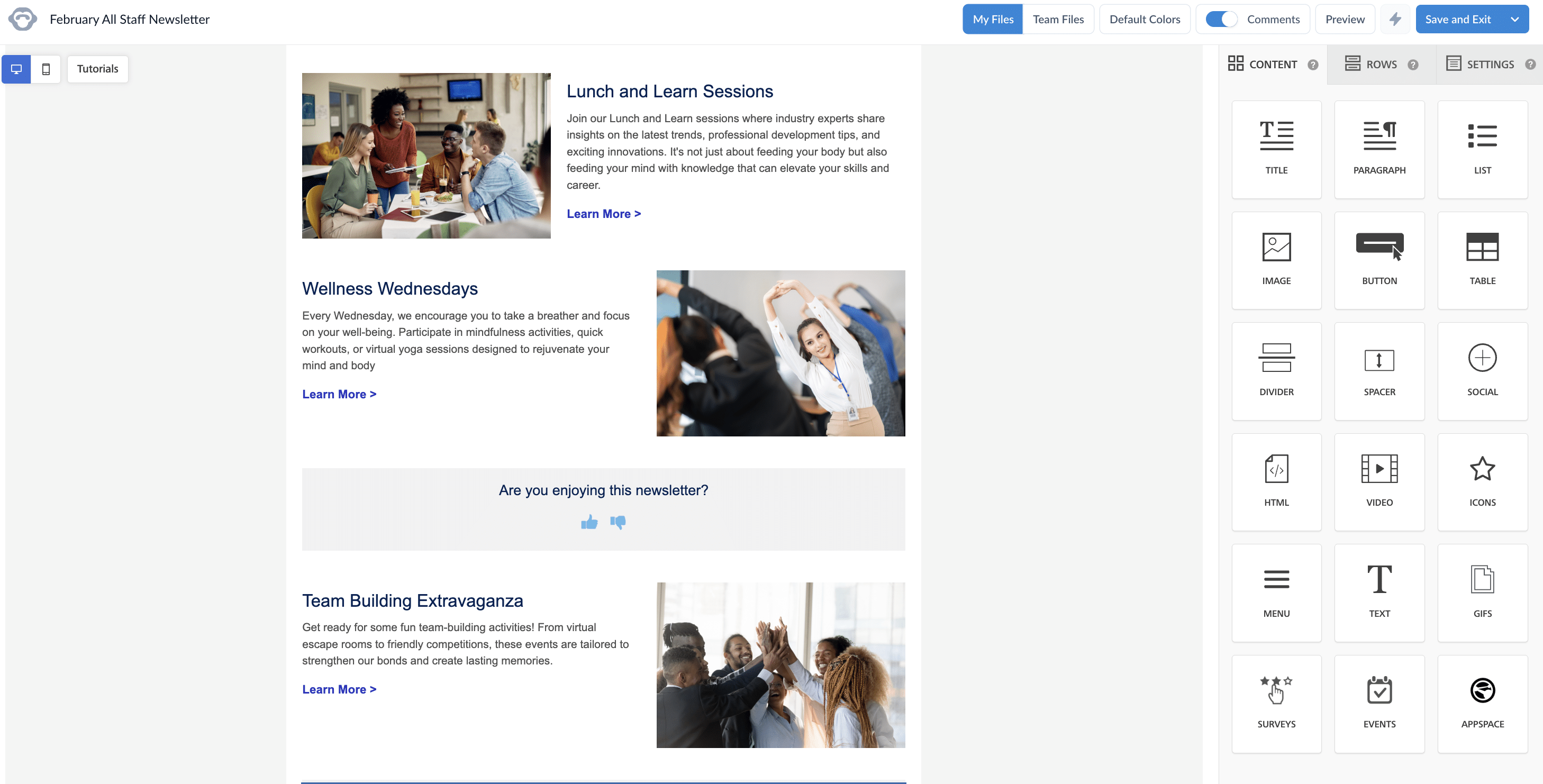- Real-time sentiment: Embed pulse surveys and emoji reactions directly below your stories to capture how employees are really feeling.