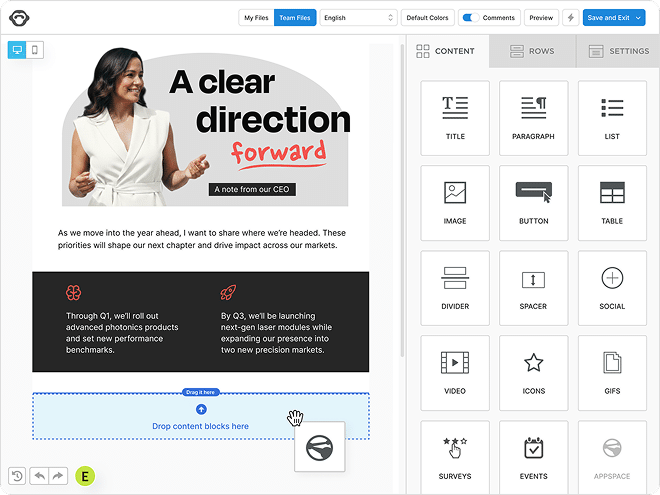 - Drag and drop: Pull live Appspace Stories directly into the ContactMonkey builder, no manual reformatting required.